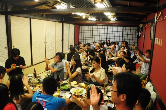 8月1日晚,中日韩三方师生在“串八”居酒屋举行了送别会。三方同学在短短的时间里已经建立了深厚的友谊,大家纷纷交换精心准备的礼物,大家都表示7日的时间实在太短暂,还邀请对方到自己的国家见学游历。送别会在热烈的气氛中结束。