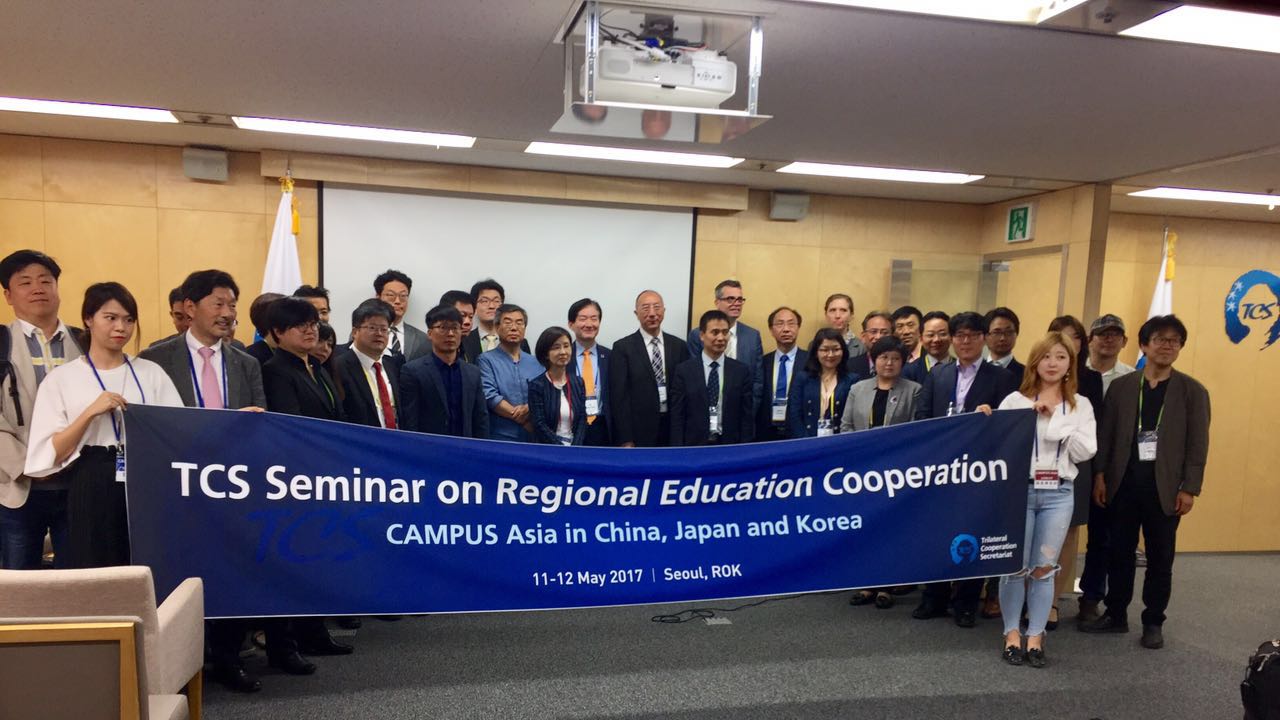 本网讯 在2016年1月30日举办的第一届教育部长会议上, 三国教育部长高度评价了亚洲校园项目, 并就三国应该继续实施并扩大亚洲校园项目达成共识。根据中日韩三国教育合作首尔宣言, 中日韩三国合作秘书处于2017年5月12日在韩国首尔四季酒店举办“中日韩三国高校亚洲校园合作研讨会”, 为三国负责亚洲校园项目的教授们和老师们提供一个交流和分享的平台。本次大会邀请三国大使馆教育参赞以及三国的40多位亚洲校园的项目负责人,我校东语学院亚洲校园教育中心副主任全优老师作为我校代表出席了本次论坛。