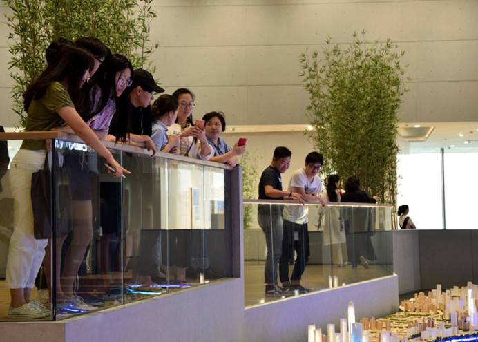 本网讯 5月4日青年节下午,亚洲校园中日韩三国学生,每三人一个小组在亚洲校园教育中心副主任全优老师、马凌燕老师、李娜老师的带领下,参观了刚刚对外开放的广州市城市规划展览中心。