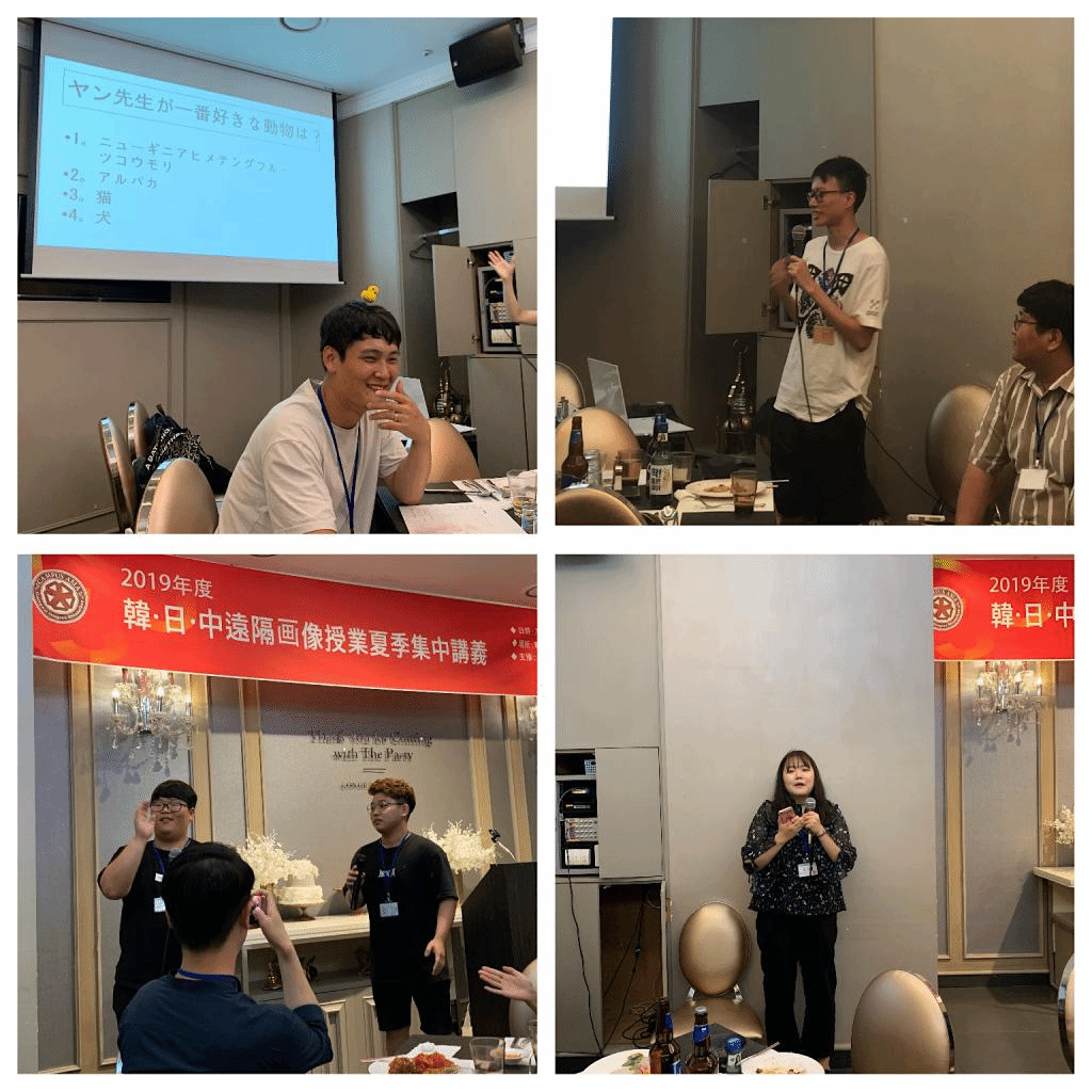 最后一日,韩国东西大学作为本次集中讲义东道主,为三国师生们精心准备了欢送会饯行。欢送会伊始,三国师生代表上台为本次集中讲义活动进行总结。任课教师、亚洲校园教育中心主任杨晓辉教授在讲话中回顾了往年集中讲义取得的积极成果,并对付出诸多劳动的东西大学师生代表表达谢意。欢送会期间,东西大学学生准备了精彩的表演节目,并安排了紧张有趣的趣味问答活动,内容精彩纷呈,高潮迭起,活动中师生们笑声不断,将当日的欢送会气氛推向高潮。现场师生热烈的掌声和欢呼声不绝。最后欢送会在学生交换礼物后划上圆满的句号。