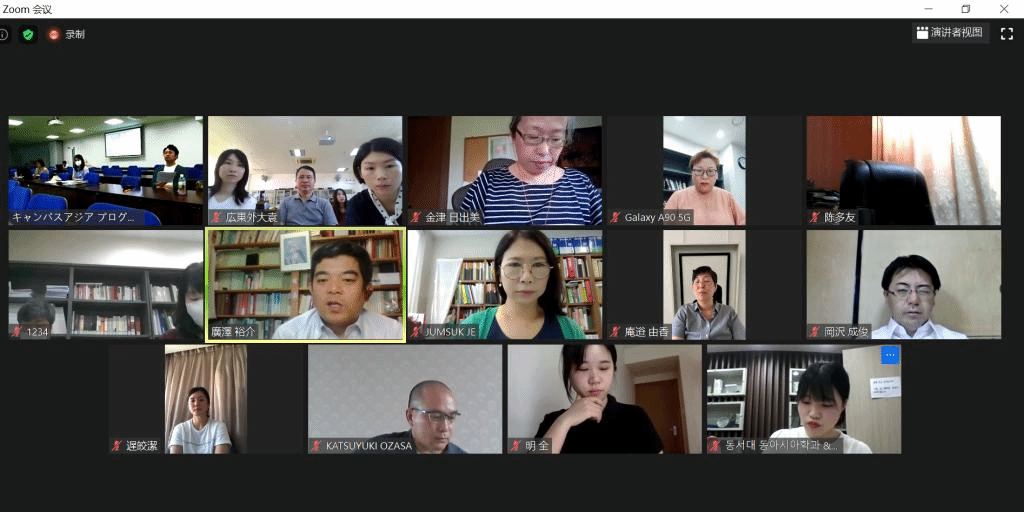 2020年7月17日上午,亚洲校园教育中心通过网络会议连线的方式与日本立命馆大学,韩国东西大学一同召开了中日韩三国大学远程教职员会议。日语语言文化学院、亚非语言文化学院(筹)院长陈多友教授,亚洲校园教育中心专任教师、外教及行政人员参加了本次会议。