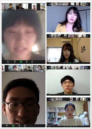 结团式正式开始前,2019级亚洲校园的同学和老师们进入ZOOM视频会议,期待着与日韩两国的学生和老师进行远程见面与交流。中日韩亚洲校园三国结团式于北京时间12点正式开始,各国老师首先进行了简短的自我介绍。随后,各国学生使用对象国两国语言进行自我介绍。学生们纷纷表示,他们很喜欢对象国的文化,渴望进一步了解另外两个国家,并且十分期待与大家的见面。三国学生热情开朗,现场氛围活泼有趣。