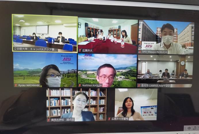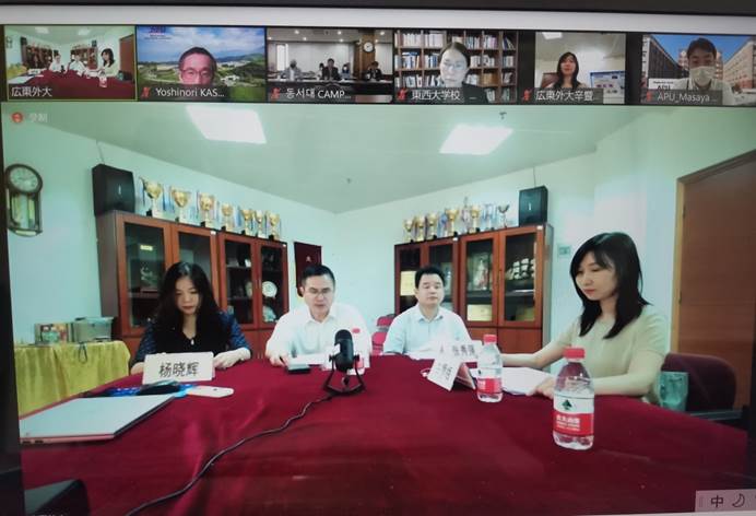 6月11日,由广东外语外贸大学、日本立命馆大学、立命馆亚洲太平洋大学、韩国东西大学四所大学共同发起的“亚洲校园”计划协同会议在线上会议平台召开。我校教务处处长杨晓辉、日语语言文化学院、亚非语言文化学院(筹)院长陈多友、副院长张秀强,亚洲校园教育中心主任辛暨梅参会。