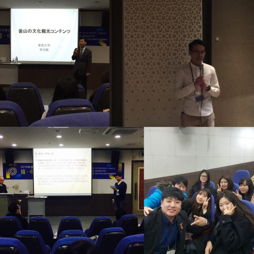 本网讯 2017年2月2日,按照亚洲校园“中日韩远程教育”课程的计划安排,我院杨晓辉教授、日语系部分研究生赴韩国东西大学参加为期五天的2016年度冬季“亚洲校园”中日韩联席集中讲义。研一的陈德华同学被推荐为中方学生代表。