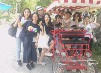 其中,在讨论发表环节三国学生集思广益、各抒己见,为日后中日韩三国的合作交流提出自己的设想,各小组提出的合作主题覆盖了文化、教育、科技等多个领域。在讨论、制作PPT、合作发表的过程中,每个人即获得了表达自己见解的机会,又获得了跨文化交际视角的启发;在此期间,每天都有各种各样的小组任务,每个小组需要通过准备和练习,完成一个小组表演。为了将中日韩三国的特色都融入到同一个表演中,三国学生相互交流意见、不断修改,为完成一个既有特色又有意义的小组公演,三国的合作发挥到了极致;除此以外,中日韩三国学子还去了顺天湾湿地、顺天湾国家庭院、谭阳竹绿园等地方进行参观和户外小组活动,在顺天湾湿地,各小组比拼生物的拍照数量,在顺天湾国家庭院进行各小组的指定动作拍照任务,在谭阳竹绿园,小组进行了小组骑车活动。通过这些团体任务,增进了小组成员间的交流和感情,给大家留下了美好的回忆。